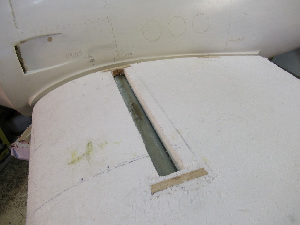 Mise en place des ailes sur le fuselage pour vérification du dièdre de l'aile