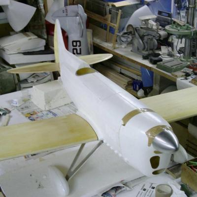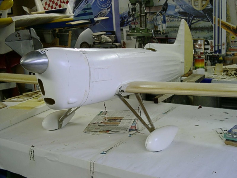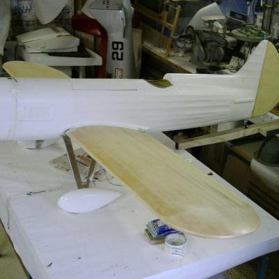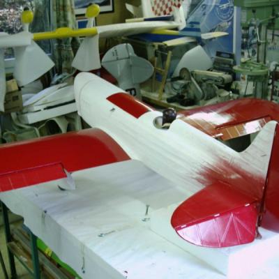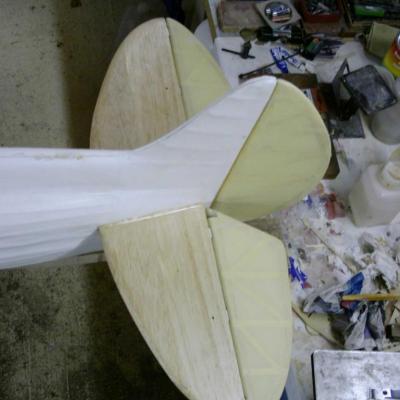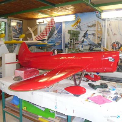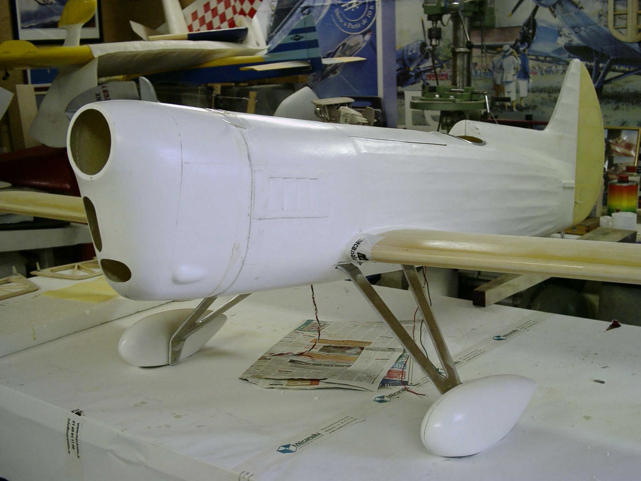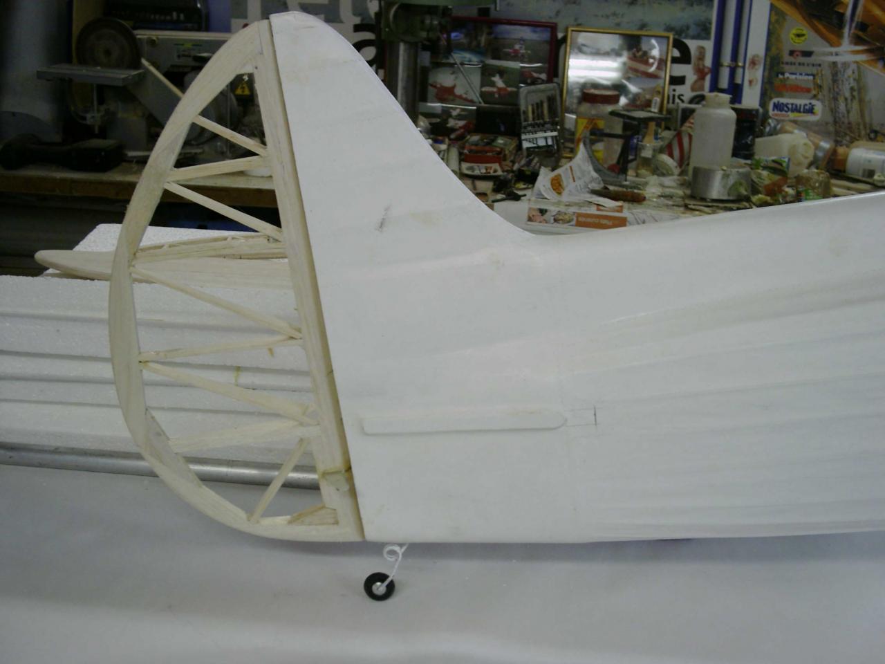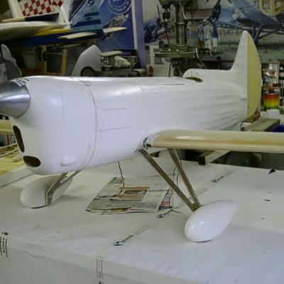 est à l'echelle 1/3 ... soit ..2,30 d'envergure , après avoir récupéré le master bois du " Howard ike " de mon ami modéliste ( Alain Ronk ) je réalise que les formes et proportions du fuselage sont approximativement les mème que le Brown B2 . Mais voila , pour ressembler à un Brown , de nombreuses transformations simposent.
