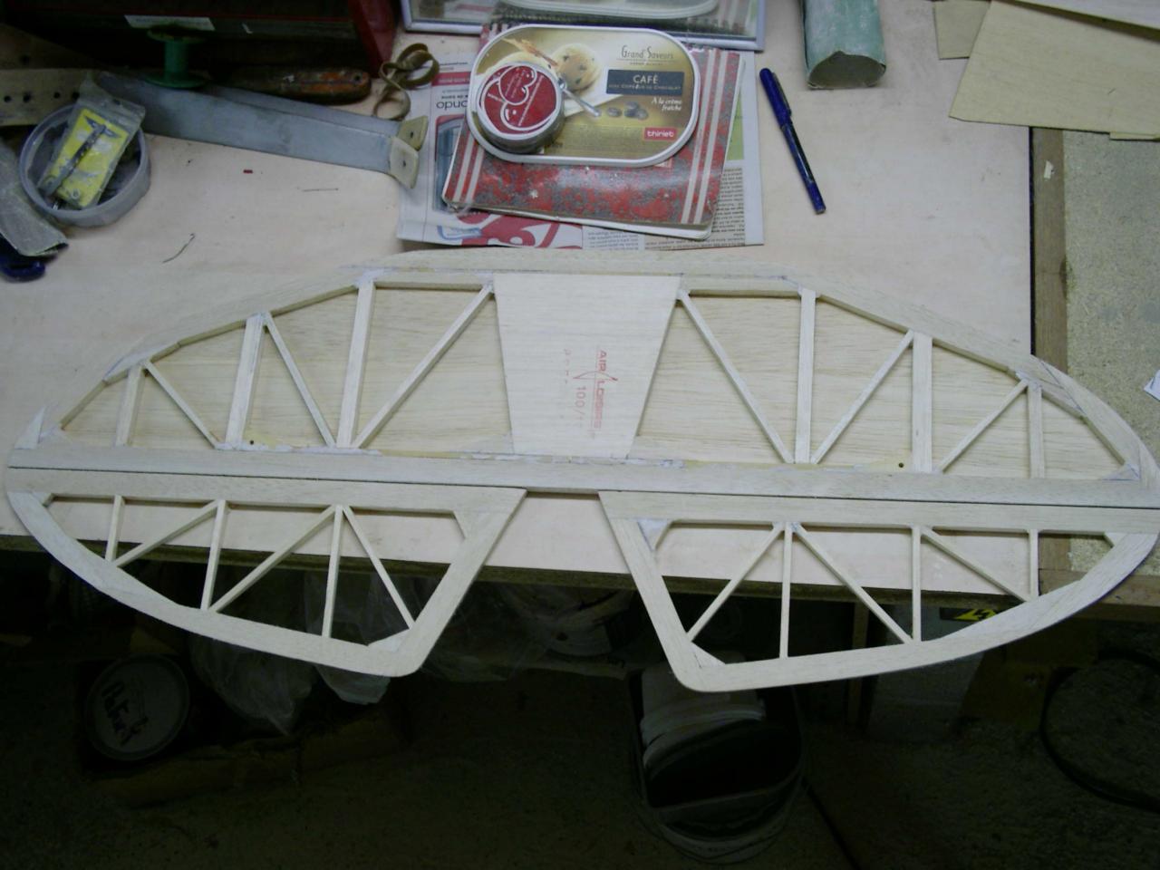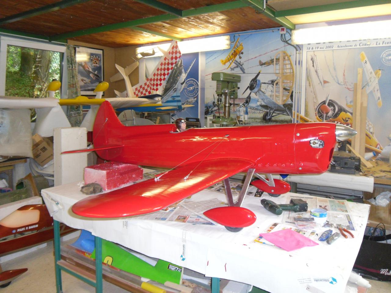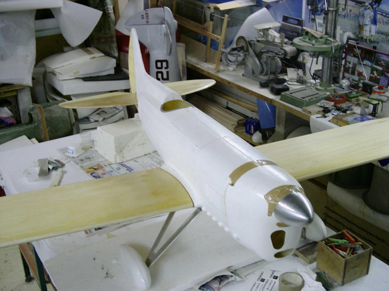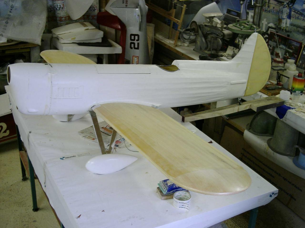 est à l'echelle 1/3 ... soit ..2,30 d'envergure , après avoir récupéré le master bois du " Howard ike " de mon ami modéliste ( Alain Ronk ) je réalise que les formes et proportions du fuselage sont approximativement les mème que le Brown B2 . Mais voila , pour ressembler à un Brown , de nombreuses transformations simposent.