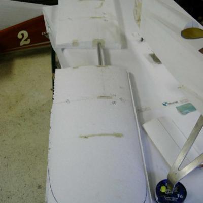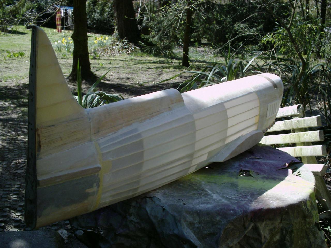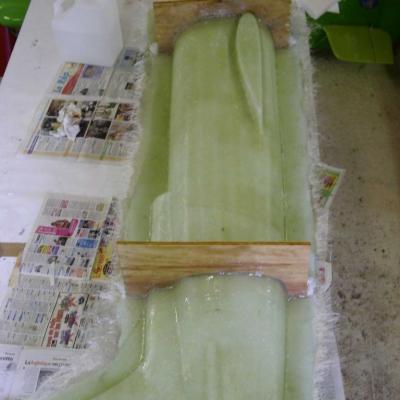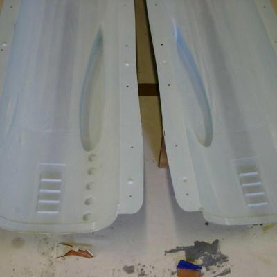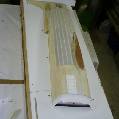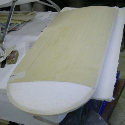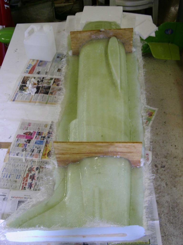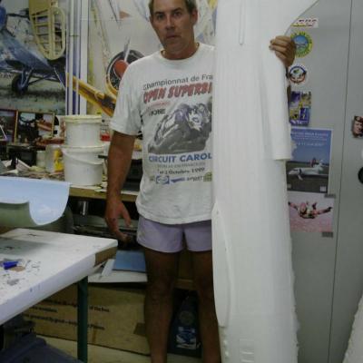 époxy , ainsi que les carénages de roues, les ailes sont en polystyrène découpées au fil chaud puis coffrées en bois éxotique, pour l'arrière