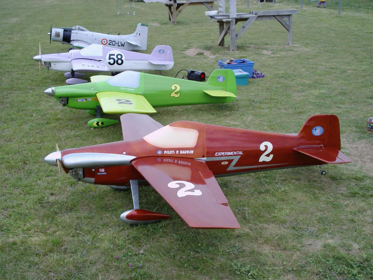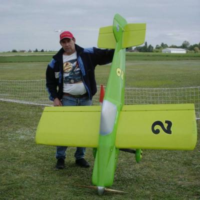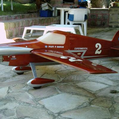 ils pèsent environs 11kgs et sont motorisés par un 62cm2 deux temps . A ce jour ces 2 avions ont ete détruits , l'un sur panne électrique du récepteur et l'autre