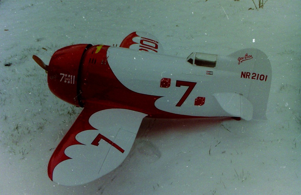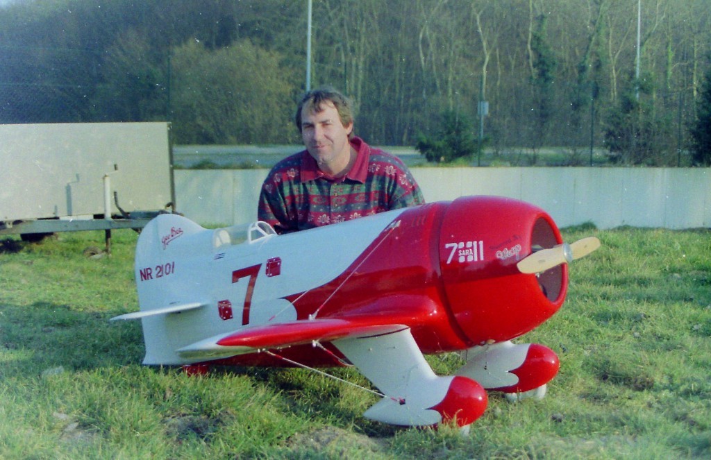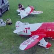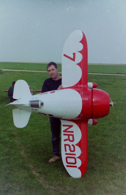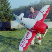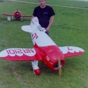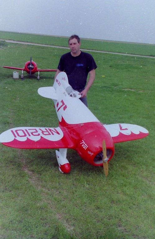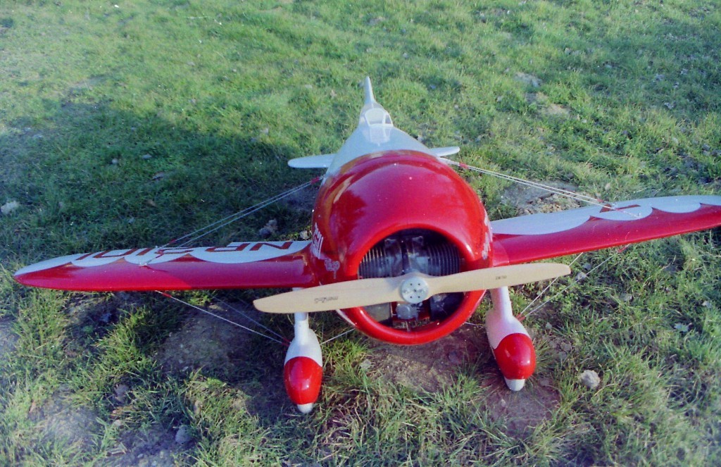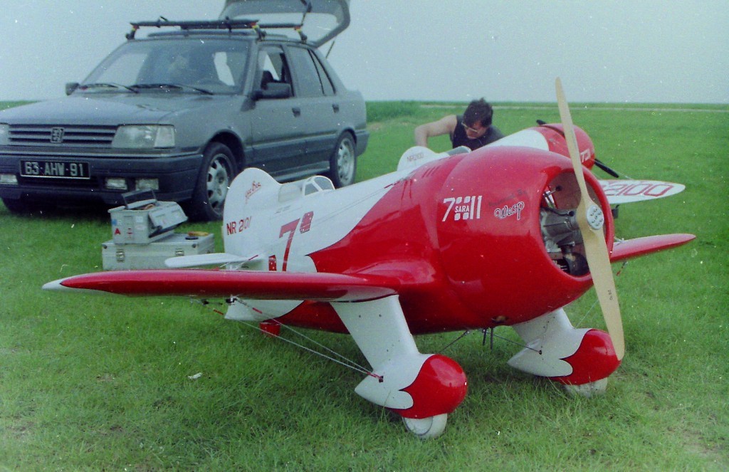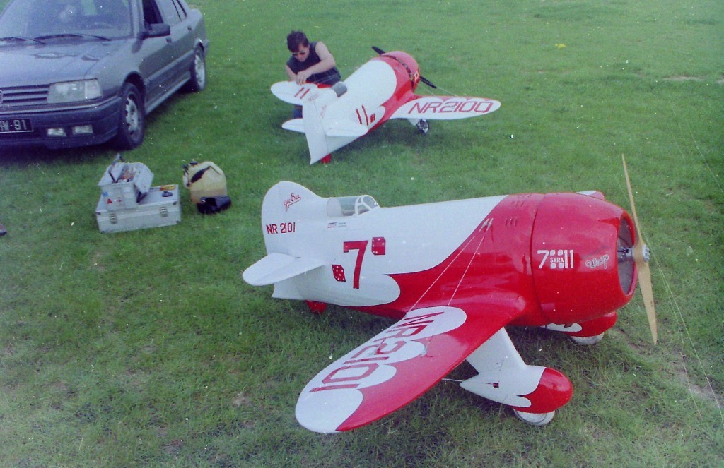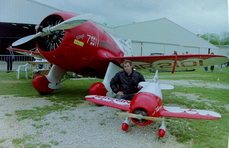 La Maquette de mon " GEE BEE R2 " est a l'echelle 1/3 soit 2,30 m d'envergure ,la carlingue le capot moteur et carénages de roues sont en fibre de verre , il Pèse 18 kgs et est , Motorisé Par un Moteur 2 temps bicylindre ( 3W - 120 cm3)