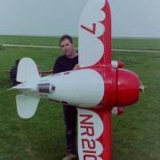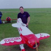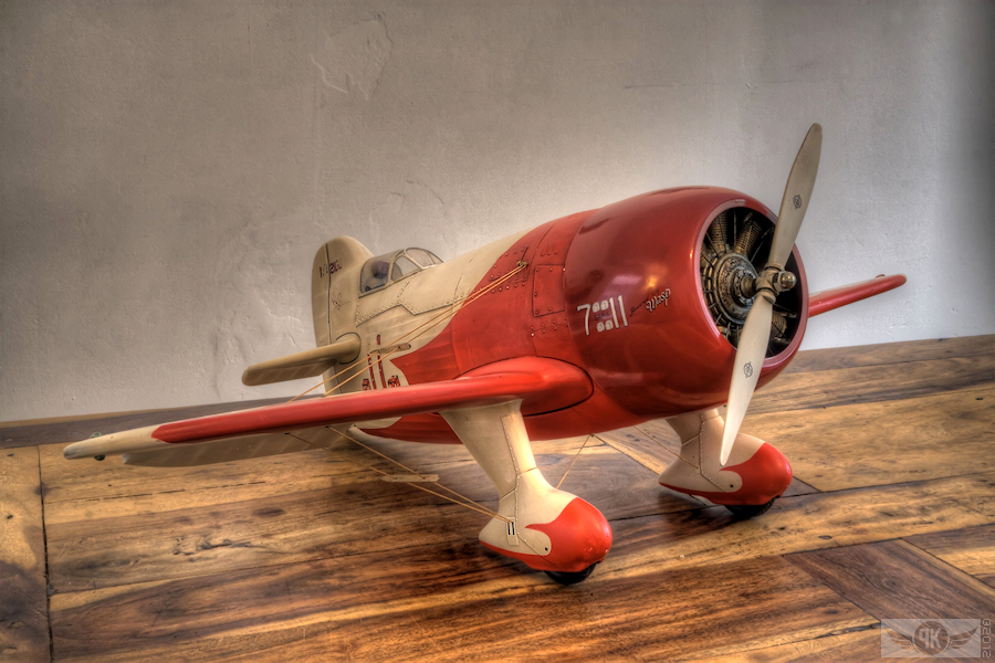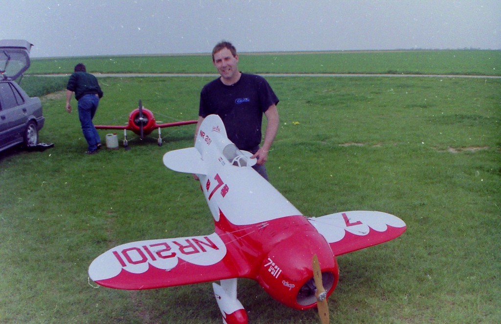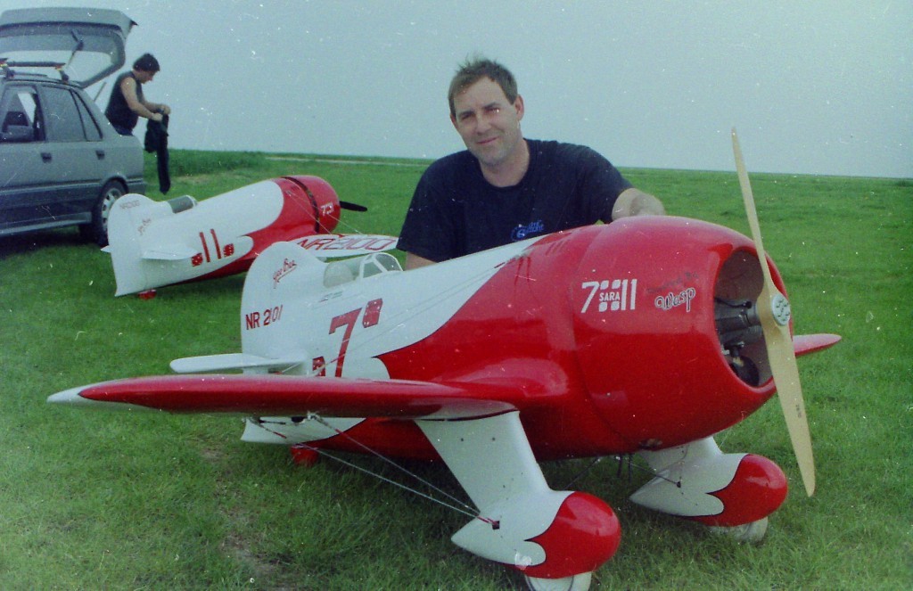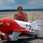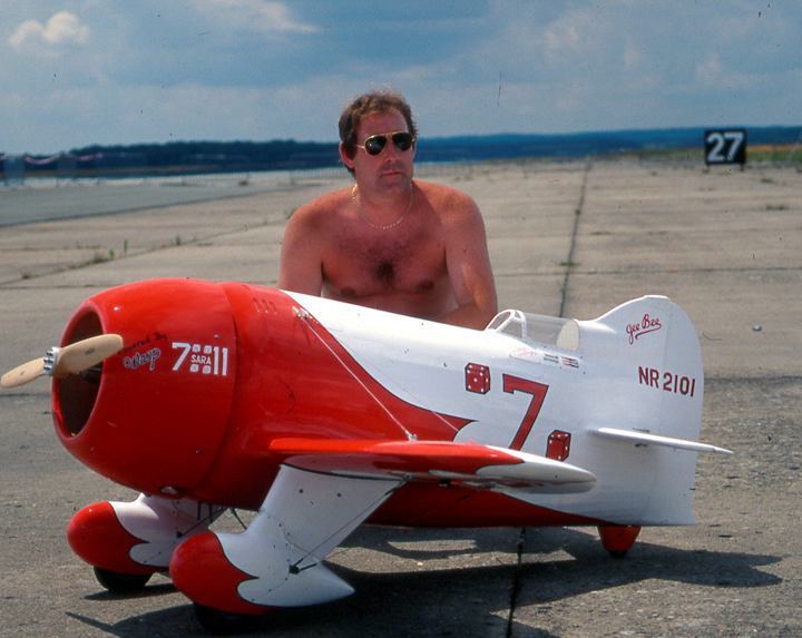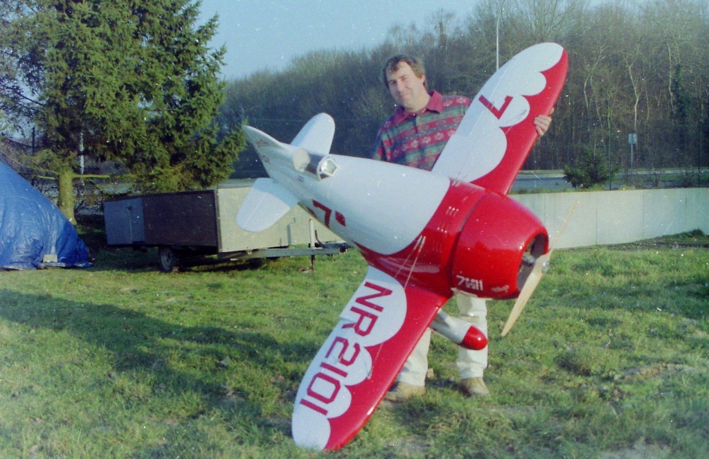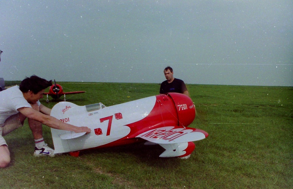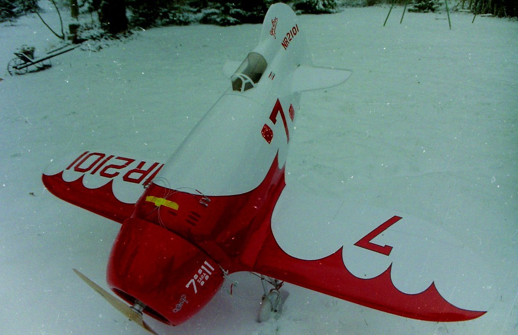 La Maquette de mon " GEE BEE R2 " est a l'echelle 1/3 soit 2,30 m d'envergure ,la carlingue le capot moteur et carénages de roues sont en fibre de verre , il Pèse 18 kgs et est , Motorisé Par un Moteur 2 temps bicylindre ( 3W - 120 cm3)
