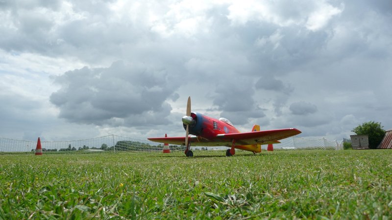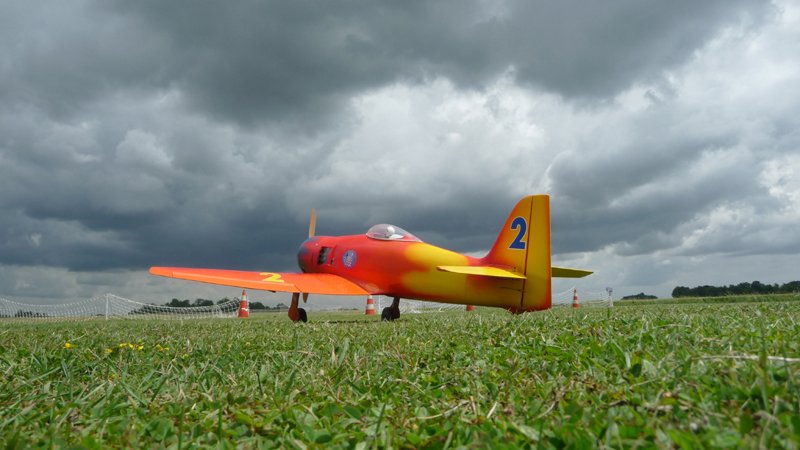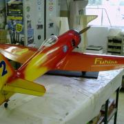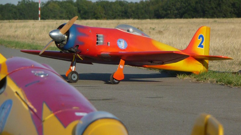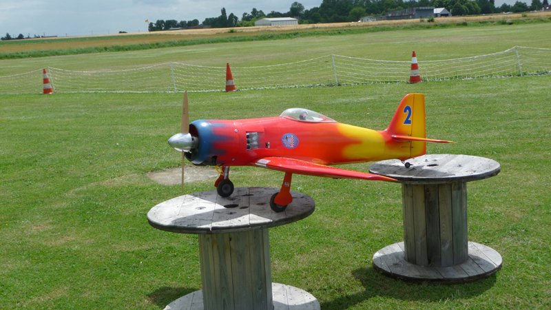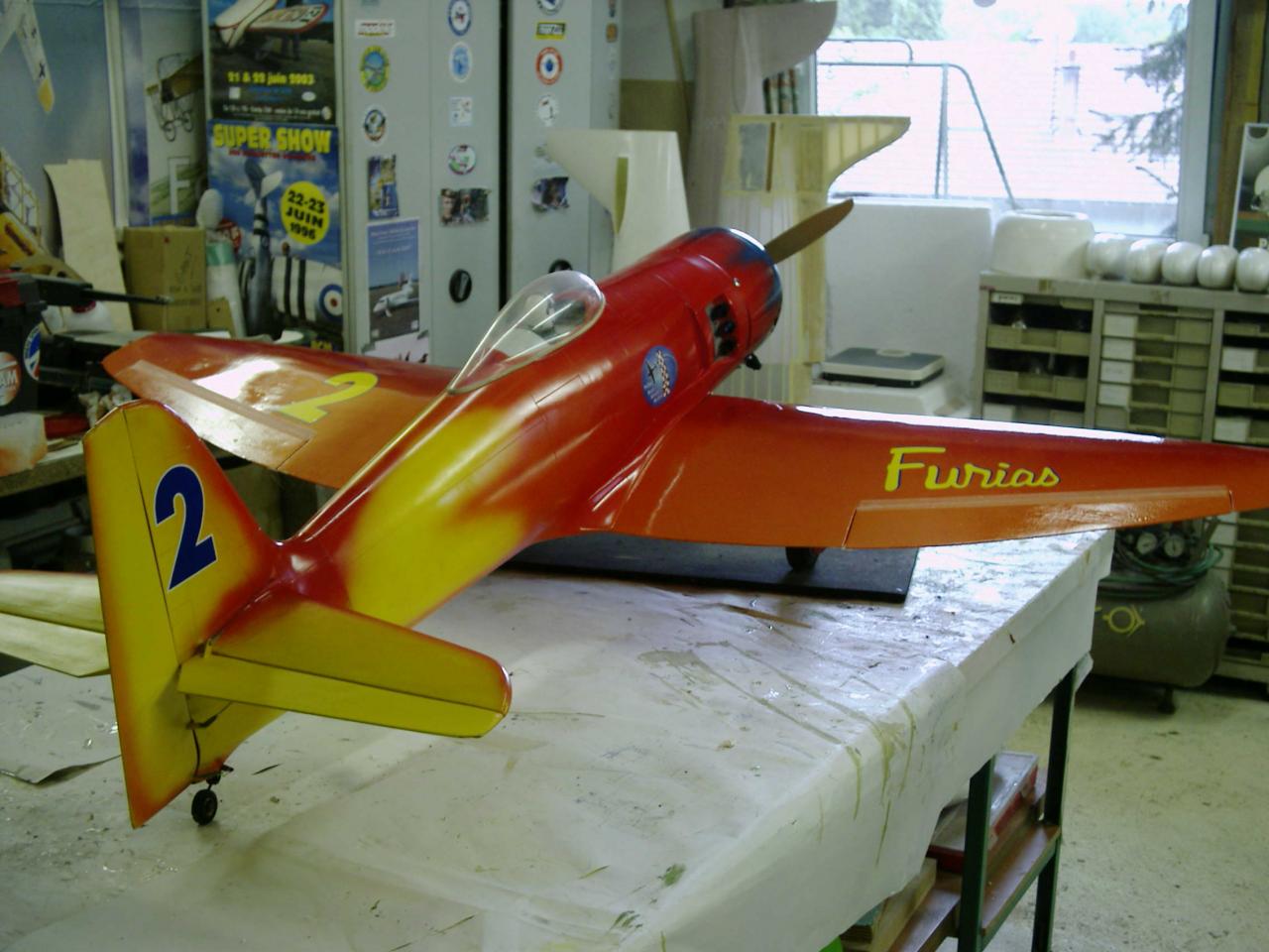 La Maquette aux couleurs du célèbre RACER de Réno Surnommé " Furias " mesure 2,04m , son fuselage est en fibre de verre , il pèse environ 10 kgs et est motorisé par un 62 cm3 ,