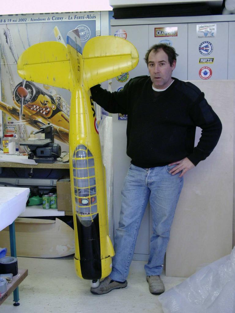 Le fuselage est en fibre de verre , et les Ailes en mousse Coffrées , Son poids Total en ordre de Vol est de 13, 3 kgs , Equipé d'un Train rentrant ,il