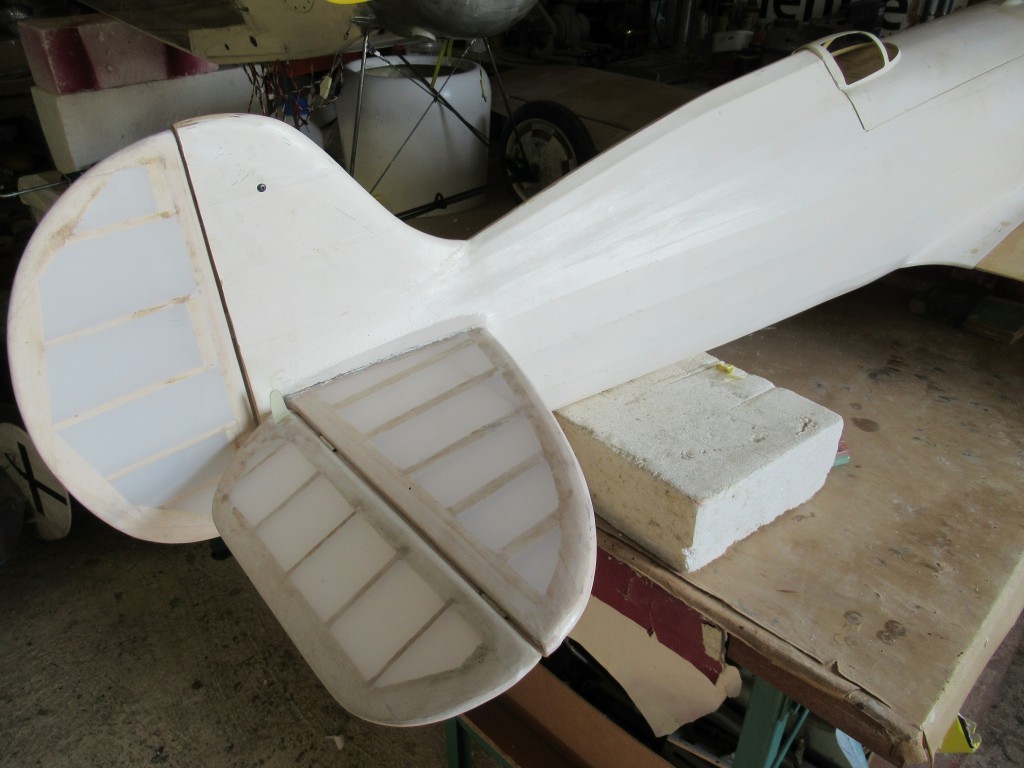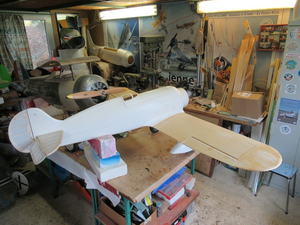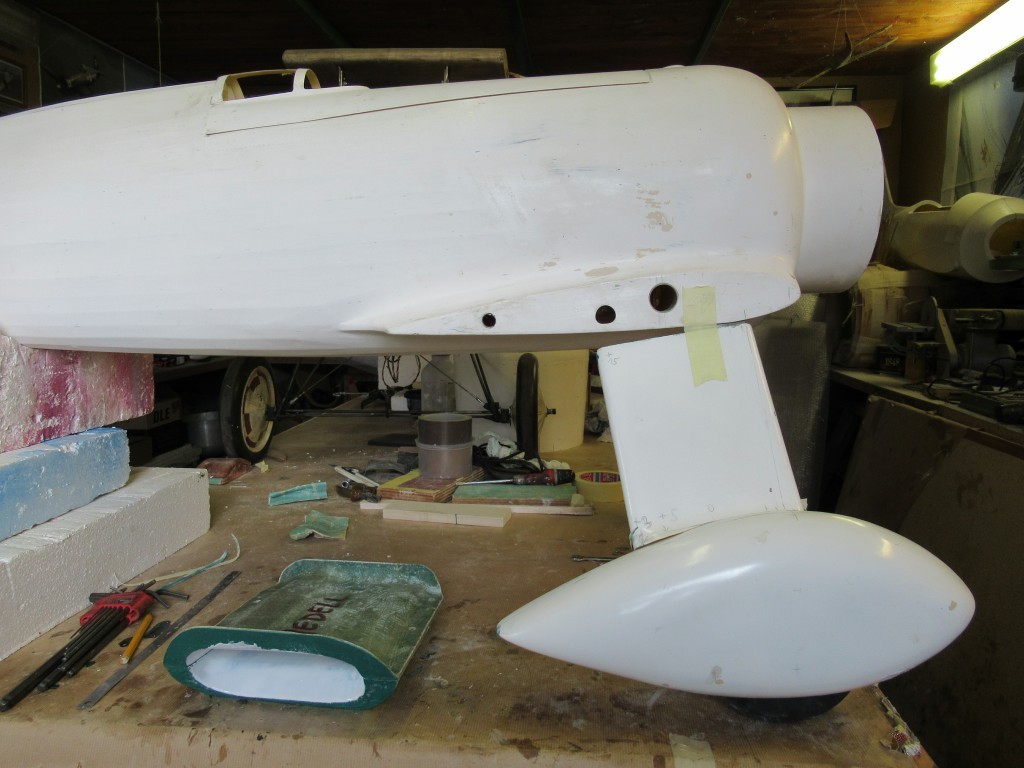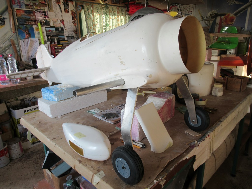 les principaux éléments déja fabriqués sont : le fuselage et capot moteur en fibre époxy sortie d'un moule perso , le stabilisateur et la dérive en structure,