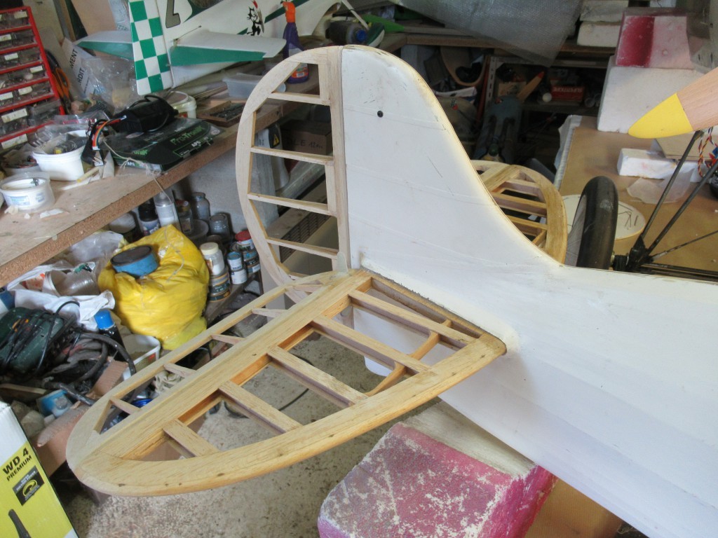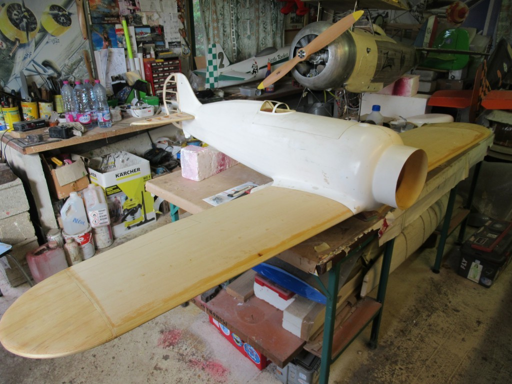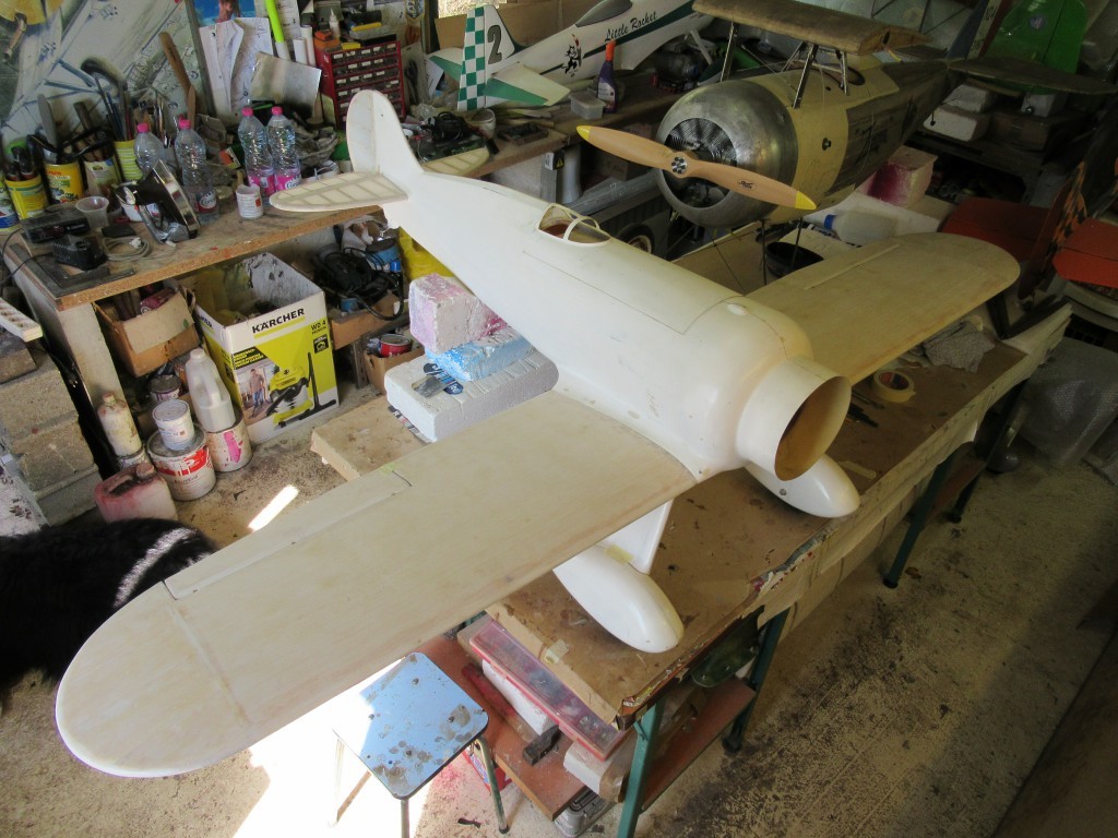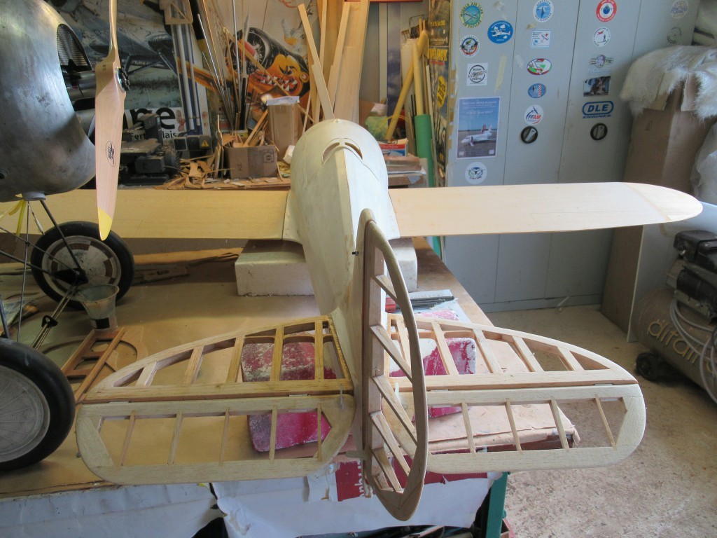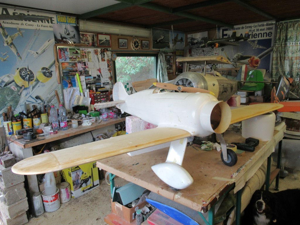 les principaux éléments déja fabriqués sont : le fuselage et capot moteur en fibre époxy sortie d'un moule perso , le stabilisateur et la dérive en structure,